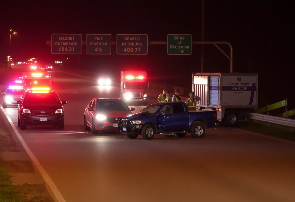 The victim was driving a pickup truck when he collided with the back of a gravel hauler that was stationary on the shoulder of the freeway due to mechanical issues. Police found the pickup truck heavily damaged in the right and center lanes, while the gravel hauler remained on the shoulder without any visible damage. Fortunately, the driver of the gravel hauler was uninjured in the crash.