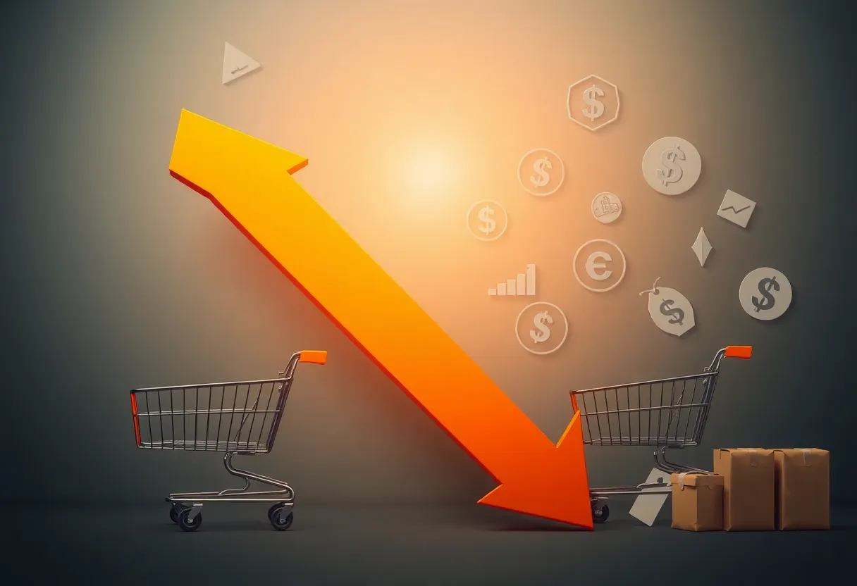 Visual concept depicting falling consumer confidence with economic symbols.