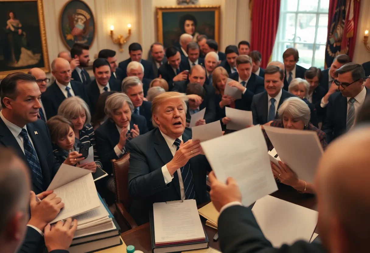 During President Trump’s executive order signing on April 9, 2025, Michigan Governor Gretchen Whitmer surprised many by hiding her face behind binders. Initially in Washington to discuss tariffs and seek federal assistance post-ice storm, her unexpected antics went viral, prompting diverse reactions on social media. Her presence raised questions about her political strategy amid criticism from her party as she potentially navigates a future presidential run.