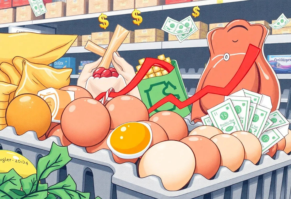 A recent report highlights a significant rise in consumer prices, with inflation hitting 3% annually and egg prices soaring by 53%. The Federal Reserve is in a dilemma as it weighs rate cut strategies amidst these jumps in grocery costs. Alongside tariffs on foreign goods, which could raise expenses further, the impact of these economic shifts is being felt by consumers trying to manage rising living costs. The outlook remains uncertain as the markets react to the inflation surge.