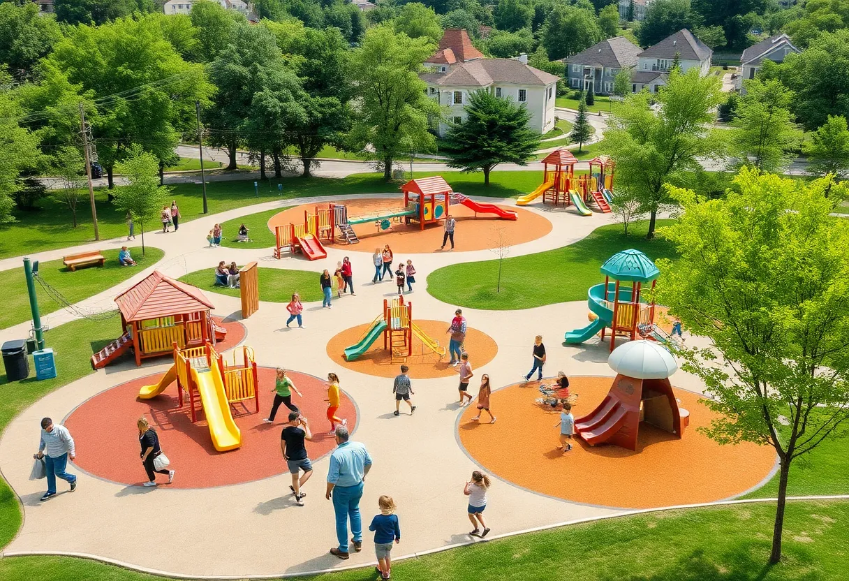 Families enjoying activities at a park in Novi, Michigan