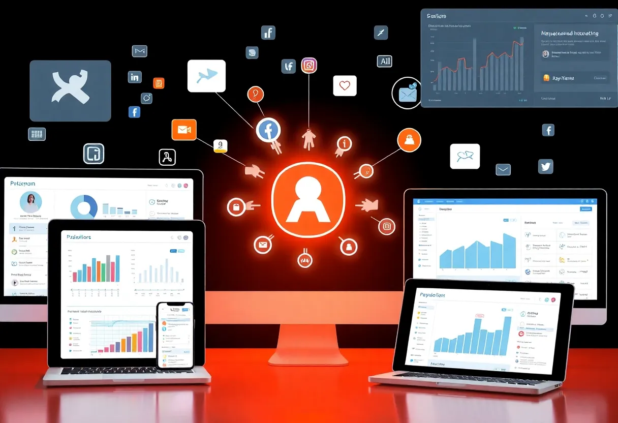 Illustration showcasing modern social media management tools