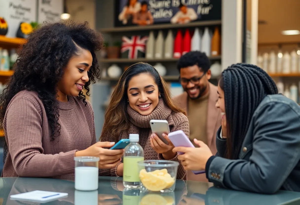 Diverse consumers engaging with UK brands reflecting authenticity and AI in marketing.